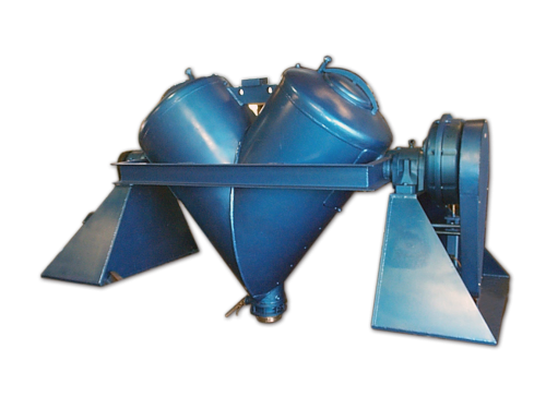 • Composed of two cylindrical legs forming a “V” geometry, which rotates horizontally to continuously tumble product